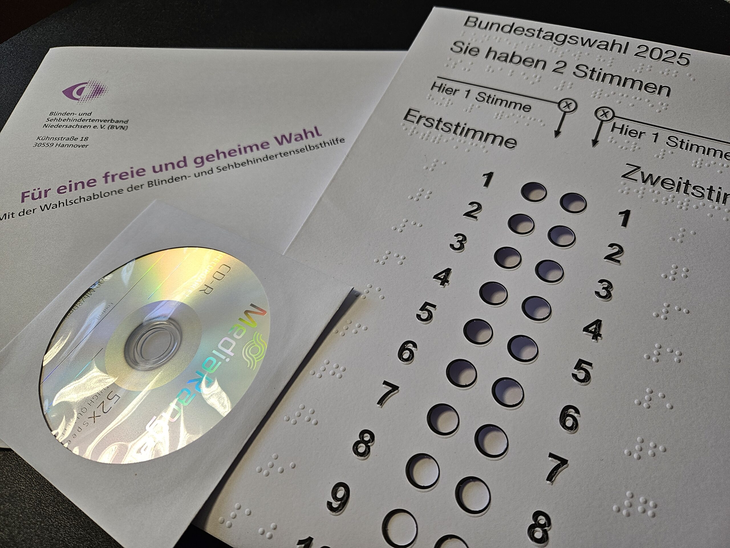 Der Blindenverband Leine-Weser weist darauf hin, dass sehbehinderte Menschen mithilfe einer sogenannten Wahlschablone ihr Wahlrecht in Anspruch nehmen können. Für Kommunalwahlen gibt es diese Schablone nicht, aber für die EU- oder Bundestagswahlen, sagt die erste Vorsitzende des Blindenverbands Leine-Weser, Rosel Kohlmeier. Alle Sehbehinderten, die Mitglieder im Blindenverband sind, werden automatisch darüber informiert und erhalten eine CD, auf der die Handhabung der Wahlschablone erklärt und der komplette Wahlzettel vorgelesen wird. Sehbehinderte, die bislang keine Mitglieder sind, können die Wahlschablone auch umsonst erhalten, so Kohlmeier, allerdings müssen sie sich selbst darum kümmern. Interessierte können sich an die Landesgeschäftsstelle des Blindenverbandes in Hannover wenden. Entweder telefonisch oder per Mail an info@blindenverband.org.