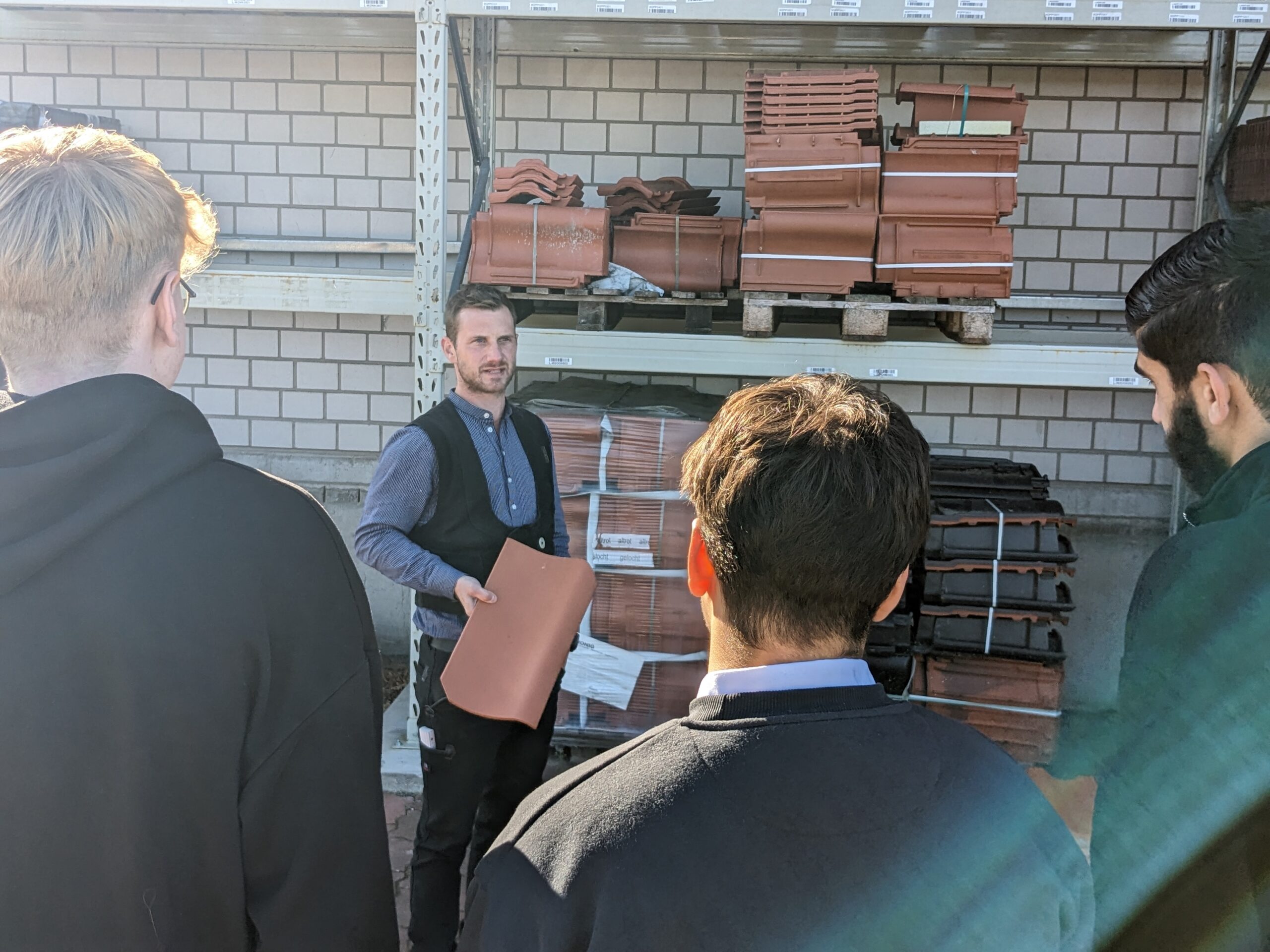 Foto: Die Projektgruppe der 11c erhält am Praxistag spannende Einblicke in die Dachdeckerei Kastner