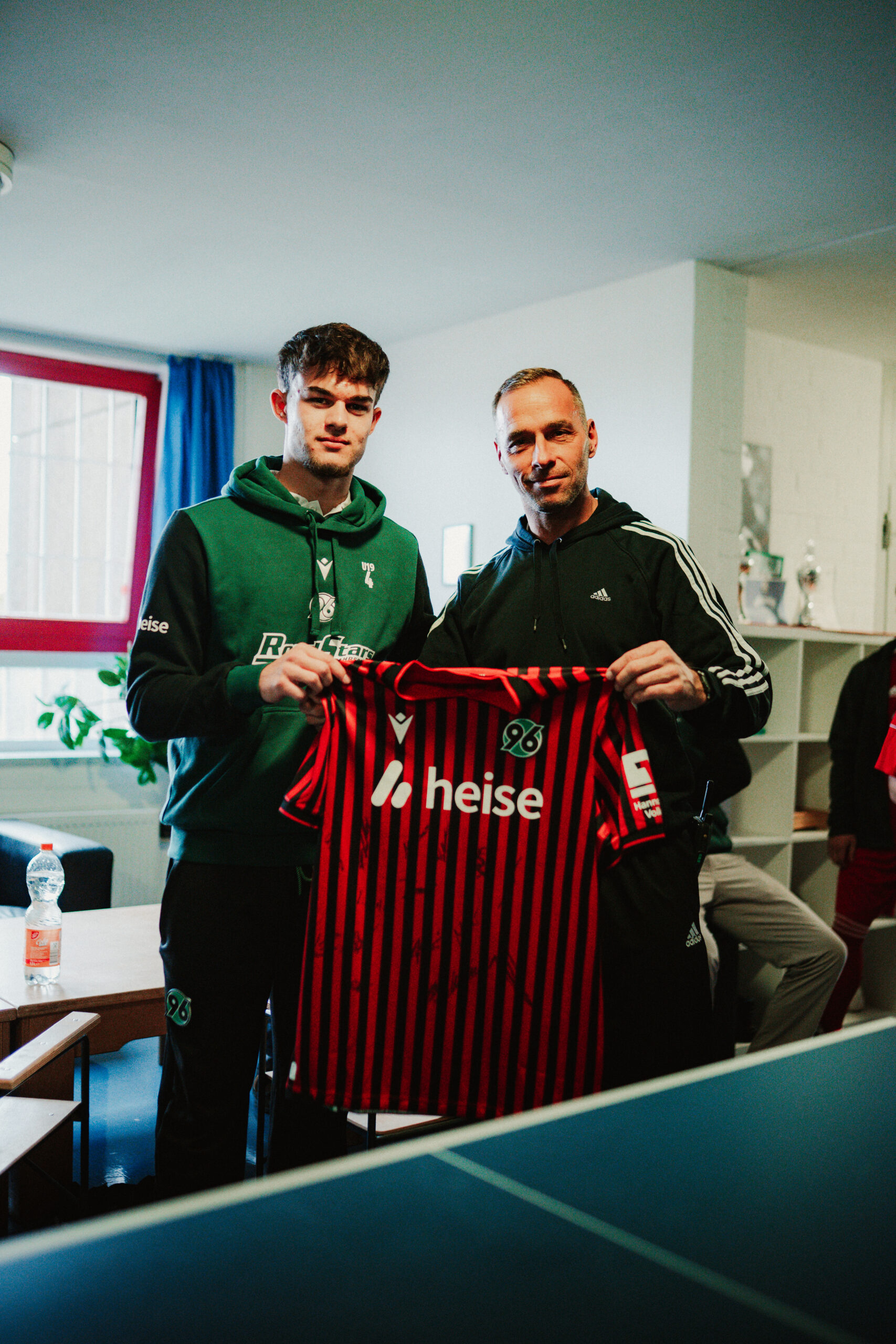 Die U19 – Nachwuchsmannschaft von Hannover 96 ist zu Gast in der Jugendanstalt Hameln gewesen. Ziel des Blickes hinter die Mauern war nicht nur der sportliche Gedanke, sondern auch Verständnis für Menschen zu entwickeln, deren Jugend bis dato komplett anders verlaufen ist und sich aktuell nicht in Richtung einer Profikarriere entwickelt. Nach einem Rundgang über den Sport- und Werkbereich und dem Besuch einer Arbeitstherapie stand ein Zusammenkommen mit den jungen Gefangenen des Projektes „Anstoß für ein neues Leben“ der Sepp-Herberger-Stiftung des DFB in der eigens dafür in diesem Jahr hergerichteten Wohngruppe auf dem Programm. Abgerundet wurde der Besuch durch ein fußballerisches Aufeinandertreffen. Als kleines Dankeschön überreichte die Jugendanstalt eigens in der Arbeitstherapie gefertigte Gastgeschenke, Hannover 96 bedankte sich mit einem signierten 96-Trikot und Trainingsjacken für die Gefangenen des Projektes.