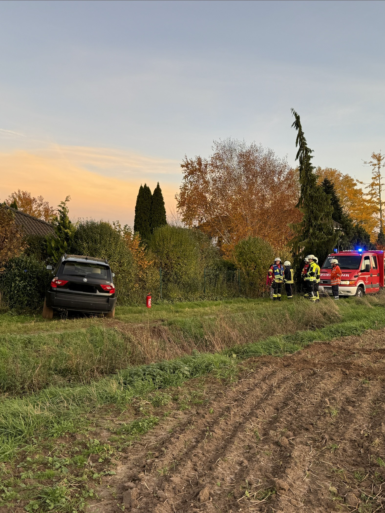 Am Mittwochnachmittag (05.11.2025,um 16:21 Uhr) sind Einsatzkräfte der Gemeindefeuerwehr Emmerthal zu einem Unfall gerufen worden. An der Einsatzstelle auf einem Feldweg hatte ein PKW zunächst zwei angrenzende Felder und einen Graben überquert und war dann schließlich vor einem Gartenzaun zum Stehen gekommen. Beim Eintreffen der alarmierten Kräfte aus Ohr und Emmern, war eine Person bereits aus dem Fahrzeug befreit und wurde vom Rettungsdienst versorgt. Die Frau kam per Rettungswagen ins Krankenhaus.