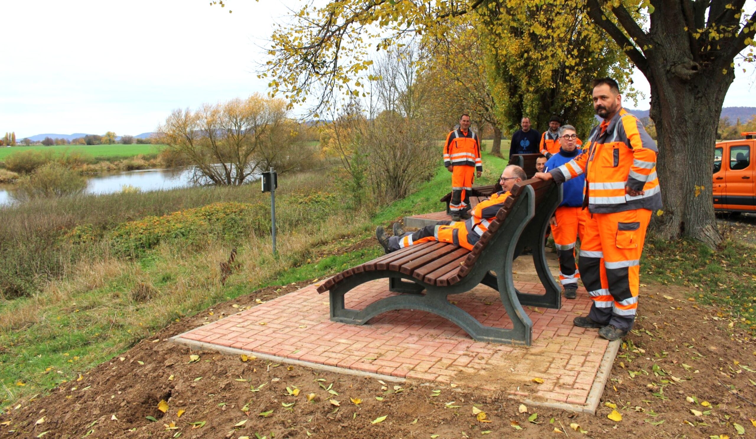 Für Menschen, die entlang der Weser unterwegs sind, gibt es jetzt einen größeren Ruheplatz im Bereich Fischbeck. Auf Wunsch des Ortsrates Fischbeck-Weibeck hat der städtische Bauhof einen Tisch sowie zwei Holzliegen an der Weser aufgestellt. Außerdem hat die dort bereits vorhandene Bank eine neue Auflage bekommen. Der Platz befindet sich an der Einfahrt zur verlängerten Lachemer Straße, die durch die Umgehungsstraße vom Stiftsdorf abgeschnitten ist und über die Brücke hinter dem Friedhof und den Radwanderweg zu erreichen ist. Für die Umsetzung des Projektes hat der Rat Hessisch Oldendorf rund 7500 Euro bereitgestellt. Die Angestellten des städtischen Baubetriebshofes haben an zweieinhalb Tagen mit dem Bagger das Gelände geebnet, die Grasnarbe entfernt, Beton-Kantensteine gesetzt, die innere Fläche mit Mineralgestein verfüllt und mit der Rüttelplatte verdichtet. Danach sind die Befestigungen für den Tisch und die beiden Liegen eingelassen sowie Verbundsteine verlegt worden. Beim Baubetriebshof sind derweil Tisch, Liegen und die neue Auflage für die vorhandene Bank montiert worden.