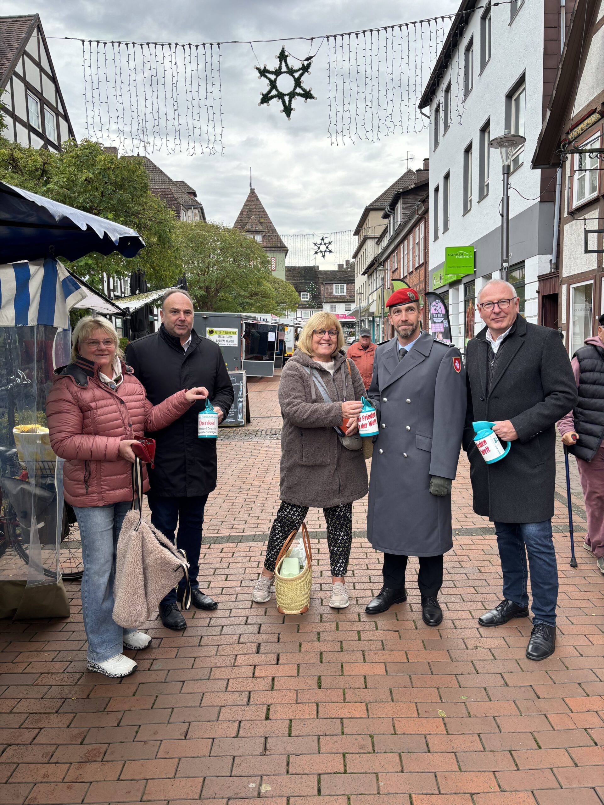 Seit Wochen sind die Soldaten des in Holzminden stationierten Panzerbataillons 1 schon unterwegs, um wieder für den Volksbund zu sammeln. Traditionsgemäß treffen sich auch die Spitzen von Stadt und Landkreis einmal, um mit dem Bataillonskommandeur in der Holzmindener Innenstadt für Spenden zu werben. In diesem Jahr sammelten Landrat Michael Schünemann und Burkhard Dörrier, als Verbindungsmann zwischen Stadtverwaltung und Bundeswehr zusammen mit Oberstleutnant Sebastian Busenthür gemeinsam im Stadtzentrum. Bürgermeister und Landrat hoffen auf eine große Resonanz in der Bevölkerung. Tatsächlich gehört der Landkreis Holzminden zu den Regionen in Niedersachsen, in denen die Unterstützungsbereitschaft sehr hoch ist. Im vergangenen Jahr gelang es mehr als 10.000 Euro zu sammeln. Damit ließen sich nach Auskunft des Volksbundes zwei bis drei Einsätze für die Kriegsgräberfürsorge im In- und Ausland finanzieren.