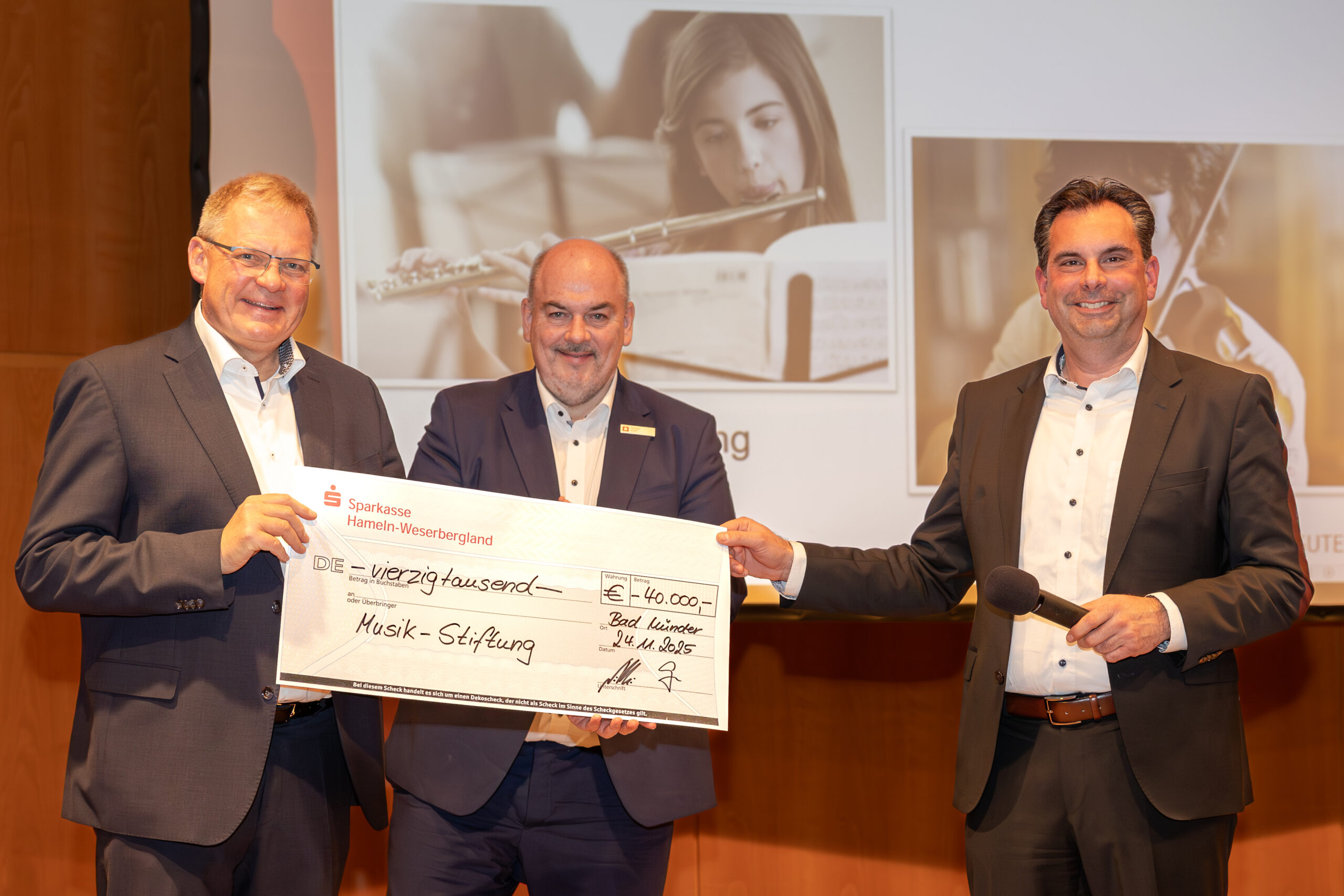 Die Sparkasse Hameln-Weserbergland hat eine „Musik-Stiftung“ mit einem Anfangsstiftungskapital von 40.000,00 Euro gegründet. Die treuhänderische Verwaltung erfolgt durch die Bürgerstiftung Weserbergland. Mit der neuen Stiftung soll Schülerinnen und Schülern ein Zugang zu musikalischer Bildung ermöglicht werden. Ziel ist es, die musikalische Erziehung und Bildung in Schulen, besonders in Musikschulen, im Landkreis Hameln-Pyrmont zu fördern und zu unterstützen. Die Stiftung wurde als sogenannte Verbrauchsstiftung für einen begrenzten Zeitraum von zehn Jahren errichtet und bietet allen interessierten Bürgerinnen und Bürgern eine Beteiligungsmöglichkeit. Durch bürgerschaftliches Engagement können die Stiftungsmittel durch weitere Spenden aufgestockt werden.