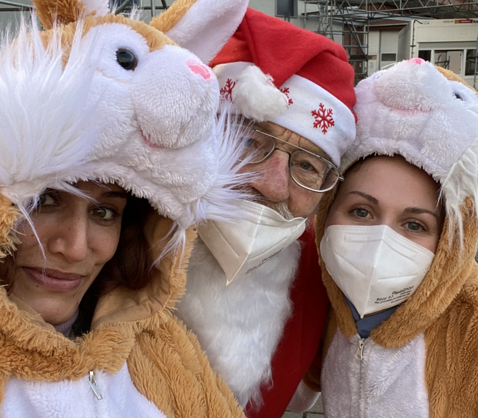 Hameln: Weihnachtsmann mit tierischer Begleitung aus dem Wald bringen auf die Kinderstation im SANA-Klinikum Geschenke und Grüße aus dem Wald