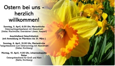 Mit einem Gottesdienst für Groß und Klein wird die Auferstehung Christi am Ostermontag um 11 Uhr in der Johanneskapelle in Reher gefeiert. Diakonin Giulia Nehls gestaltet mit einem Team den Gottesdienst, bei dem auch für die Johanneskapelle eine neue Osterkerze entzündet wird.