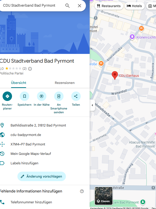 CDU-Parteibüros, die plötzlich „Eierhaus“ heißen – was zunächst nach einem schlechten Scherz klingt, ist Teil einer größeren Online-Aktion. Bundesweit sind entsprechende Einträge bei Google Maps aufgetaucht. Auch im Landkreis Hameln-Pyrmont war das Thema kurzfristig sichtbar. Was steckt hinter diesem Protest, der im Netz oft als „Trollen“ bezeichnet wird, berichtet radio aktiv-Chefredakteur Anton Posnak-Sommer. Wie einfach das technisch ist, hat Vivien Görzen vom Journalisten Jobst Höche aus Hameln erfahren…