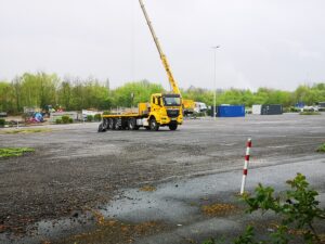 Für den Ernstfall werden umfangreiche Schutzmaßnahmen vorbereitet: So sollen 72 mit Wasser gefüllte Überseecontainer aufgebaut werden, die eine Druckwelle bei einer möglichen Sprengung abfangen und umliegende Gebäude schützen sollen. Die Arbeiten stellten eine große logistische Herausforderung dar.